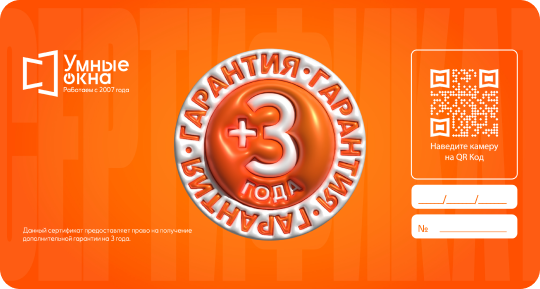 Увеличение стандартной гарантии на профиль и фурнитуру. Можно выбрать при оформлении замера по акции «Выбери свой подарок».